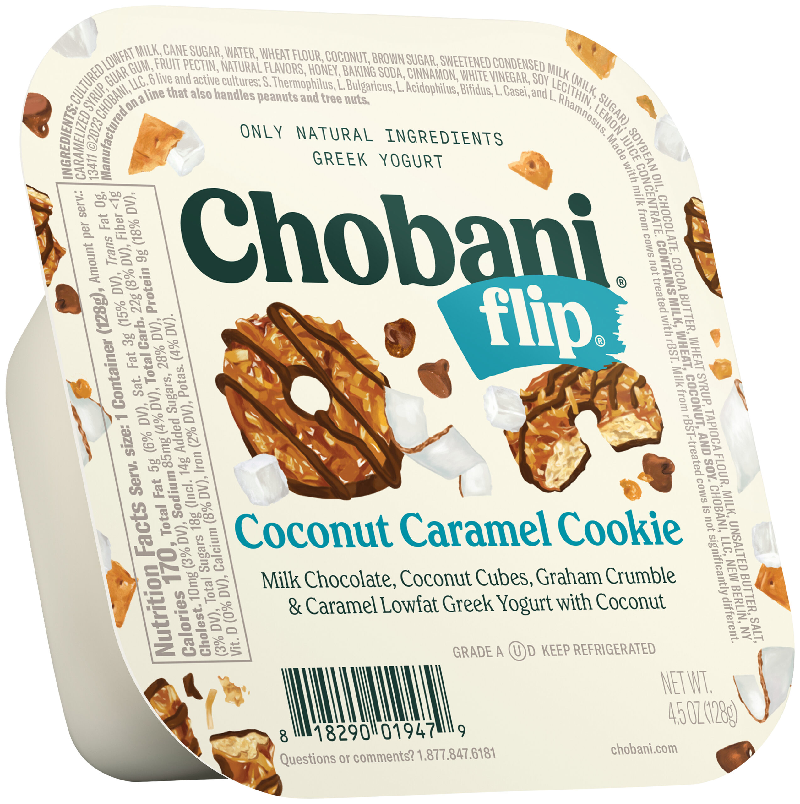 Chobani, Flip Low Fat Greek Yogurt Coconut Caramel Cookie, Case Of 12, 4.5 Oz