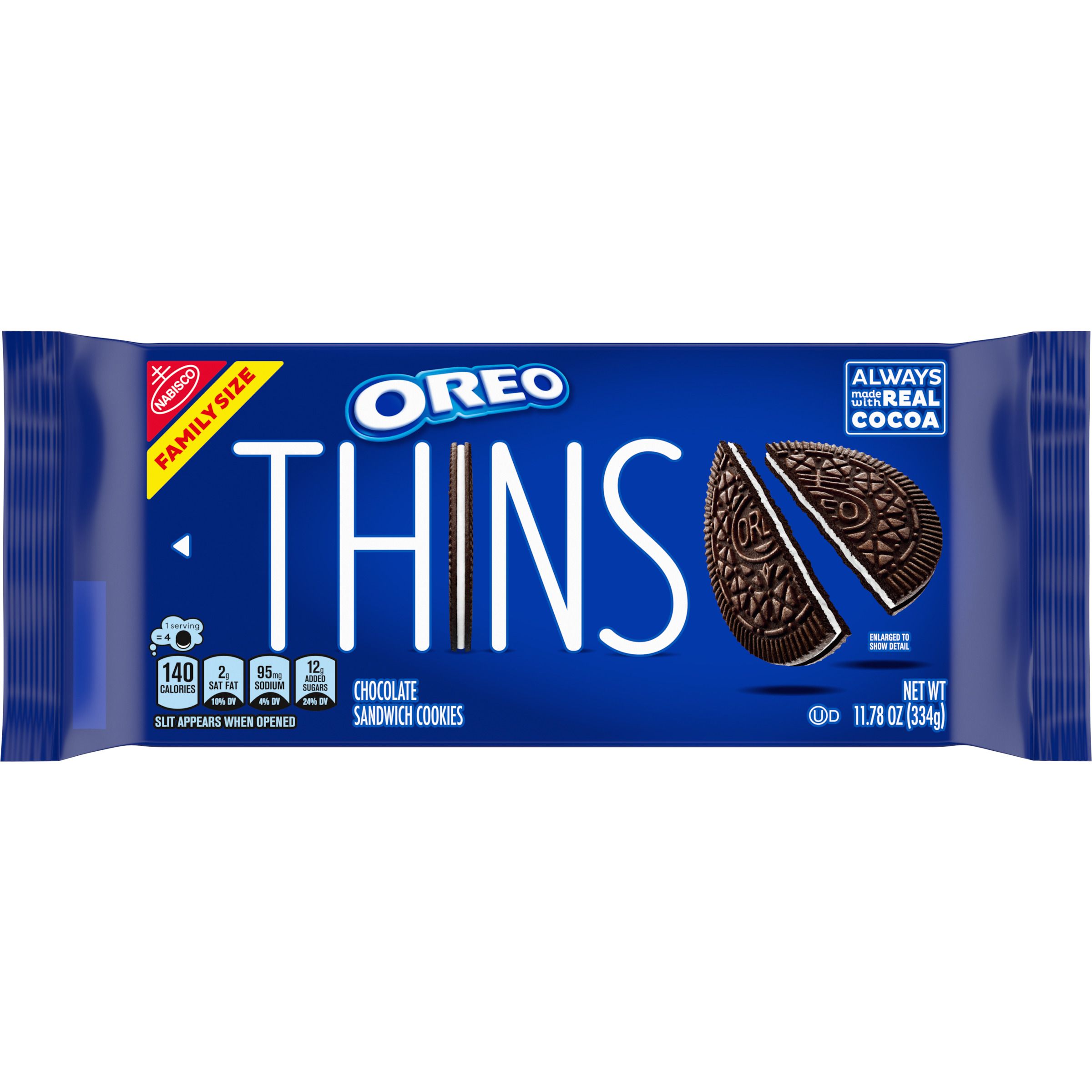 Oreo, Thins Chocolate Sandwich Cookies Family Size, Case Of 12, 11.78 Oz